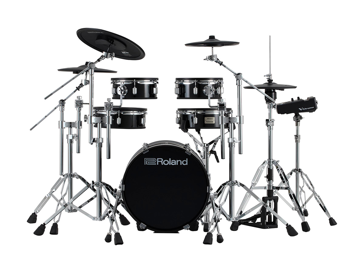 音源モジュールにV51を採用したV-Drumsシリーズのドラム・キット。スネア/ハイハット/ライドはデジタル・パッドを標準装備し、より自然な演奏表現に加えて、スネアのクロス・スティックや、ハイハット/ライドのタッチ・ミュートといった奏法にも対応する。タム・パッドは新たに開発されたPD-10P/PD-12Pで、3つのセンサーによる打点検出でレスポンスが向上。キック・パッドはKD-12、ラック・スタンドは新設計のモデルが用意される。