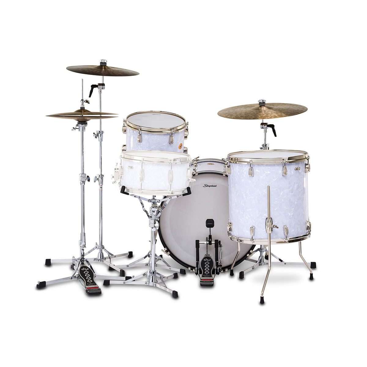 スネアとタムには、まとまりのあるサウンドを演出する内巻きタイプのスティックセイバー・フープをセット。シェルに内蔵されているトーン・コントロール・マフラーや、中期モデルから採用されたスネアのズーマティック・スロー・オフ(ストレイナー)やブランド初期を象徴する雲型バッジなど、当時の機構が忠実に再現されている。