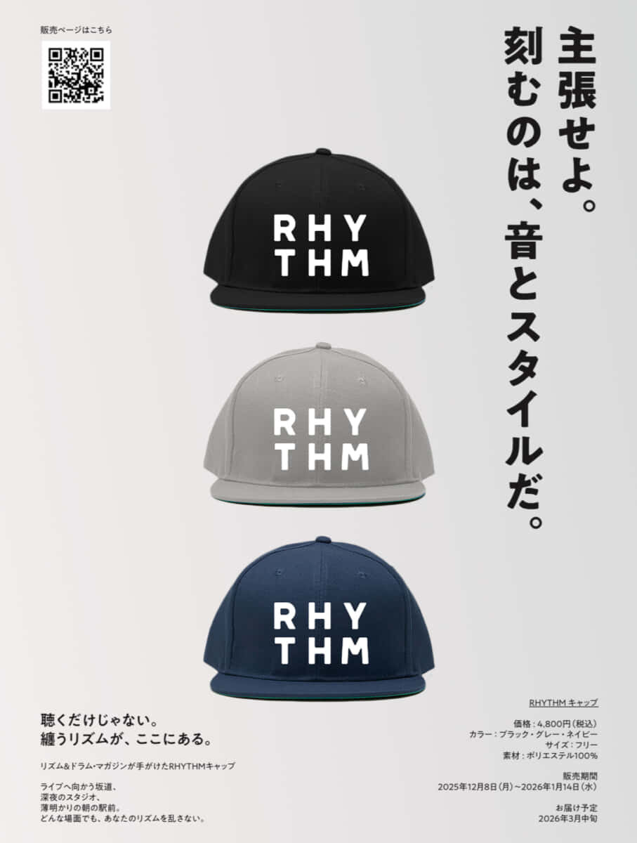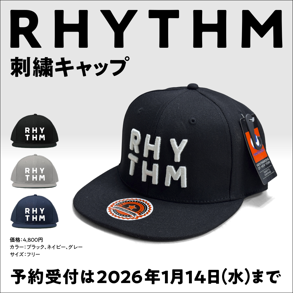 “RHYTHM”の文字を刺繍したオリジナル・キャップ! 予約は1月14日まで