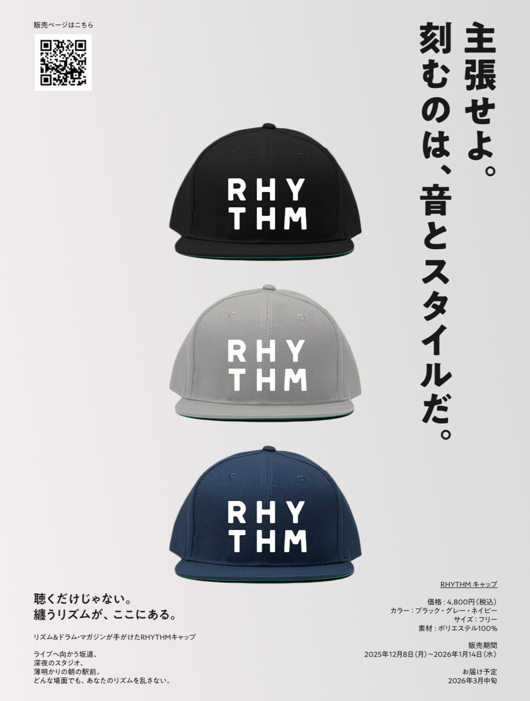 リズム&ドラム・マガジンが手がける”RHYTHM刺繍キャップ“が、1月14日までの期間限定で、現在予約受付中。
