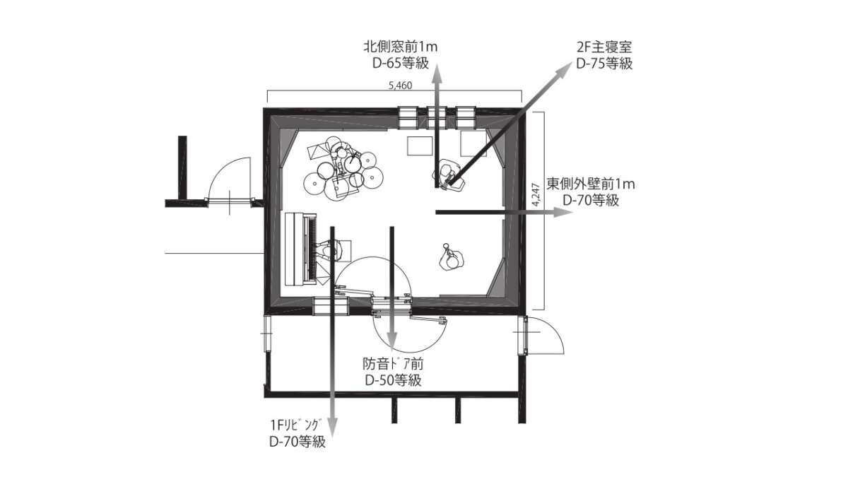 アコースティックエンジニアリングが作る防音室で特に重視される室内の音の響きに関しては、大野さんが主にジャズを演奏することや、この部屋ではドラム以外の楽器も演奏されること、オーディオを楽しむことも考慮して設計が進められた。