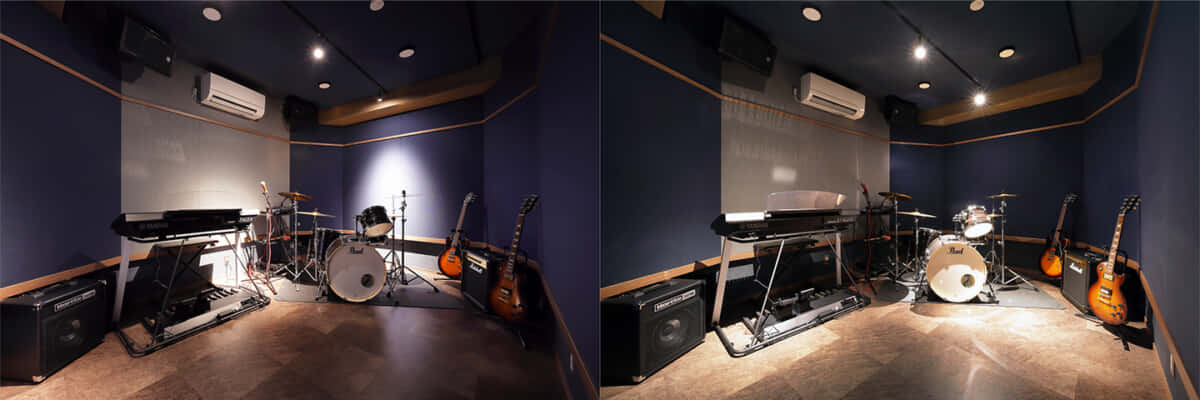 スタジオの広さは約8畳。これはご主人の「ドラムを置いて、バンド演奏できる広さが欲しかった」という希望による。