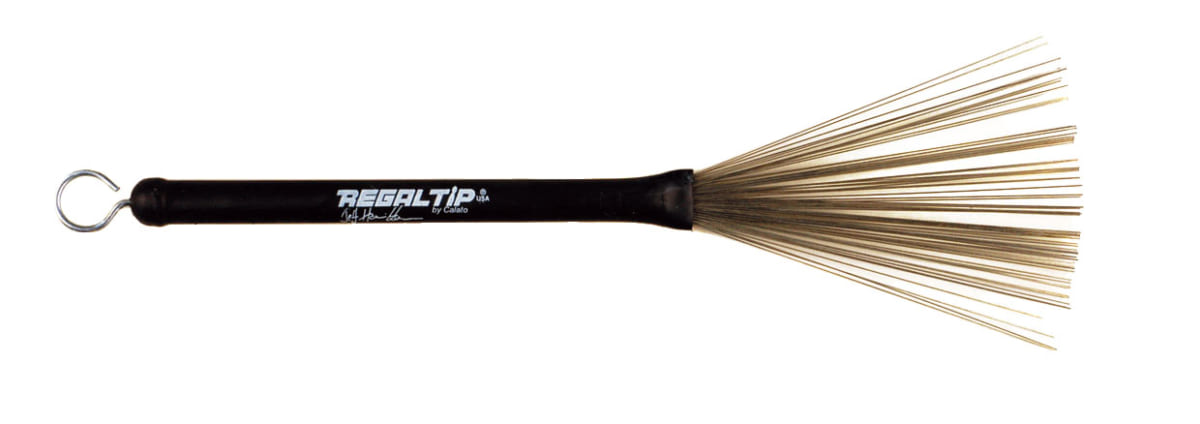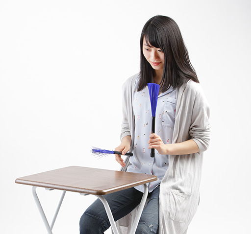 ページ・トップの写真は“ナイロン・ブラシ”というドラマーが使う道具(楽器屋さんで手に入ります)で机を叩いているイメージです。スティックを使う基礎練習とは異なりますが、曲の確認練習ならば、結構しっかり叩いても騒音や振動は少ないので役立ちます。ちなみに本格的な上写真の“ワイヤー・ブラシ”でもいいのですが、叩いた場所が黒くなってしまうので注意してください。