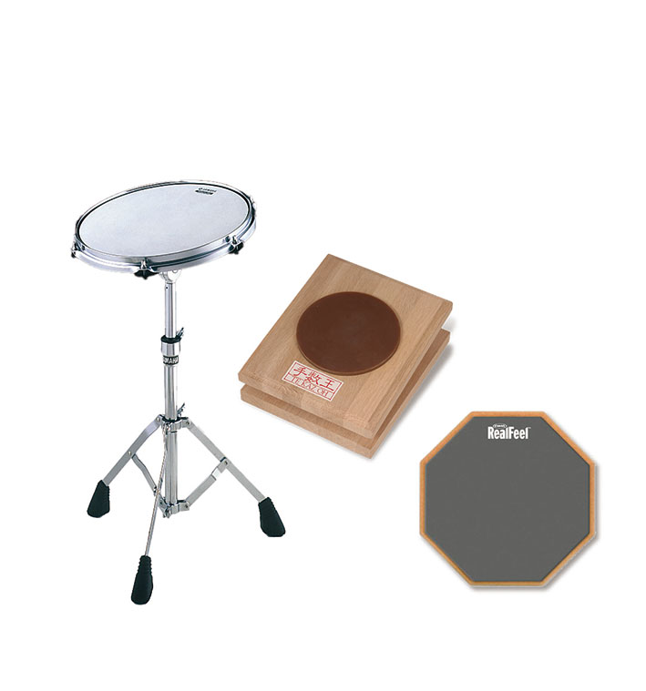 ドラム・セットは椅子に座って演奏する楽器なので、自宅での練習も椅子に座った姿勢を基本にしましょう。そう考えると、家にある椅子に応じて高さや角度調整ができるスタンドつきのタイプが最適です。打面に関しては、本物のドラムと同様に“叩いた”と“弾む”という両方の感覚をシッカリ味わえる方がいいですね。最近のパッドは“打感がリアルなのに音は静か”というタイプもいろいろとあるので、以下のQ&Aコーナーも参考にしつつ、楽器店で相談してみましょう。