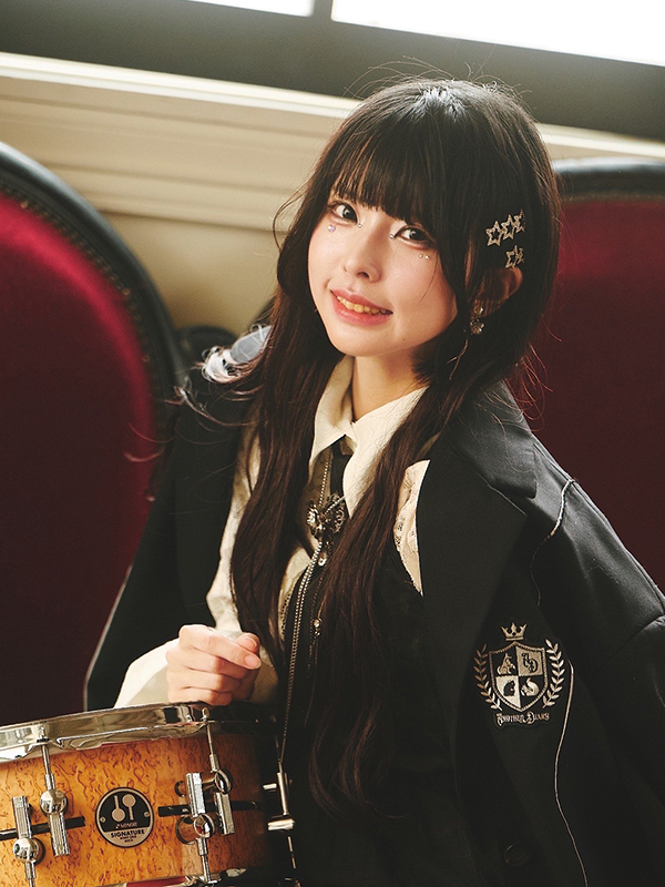 “YouTuberガールズ・バンド”=ステミレイツとしてのキャリアを持ち、現在はモデル活動も行いながら自身のバンド、Another Diaryで精力的な活動を見せるGOMI。彼女が一目惚れしたRose Copperフィニッシュがインパクト抜群のDW Collector’s Pure Mapleのセット図Tシャツ&フーディが誕生! 奏者左側に配置されたライド・シンバルやスネアとハイハットの距離感は、オープン・ハンド奏法を駆使する彼女ならではのセッティング!