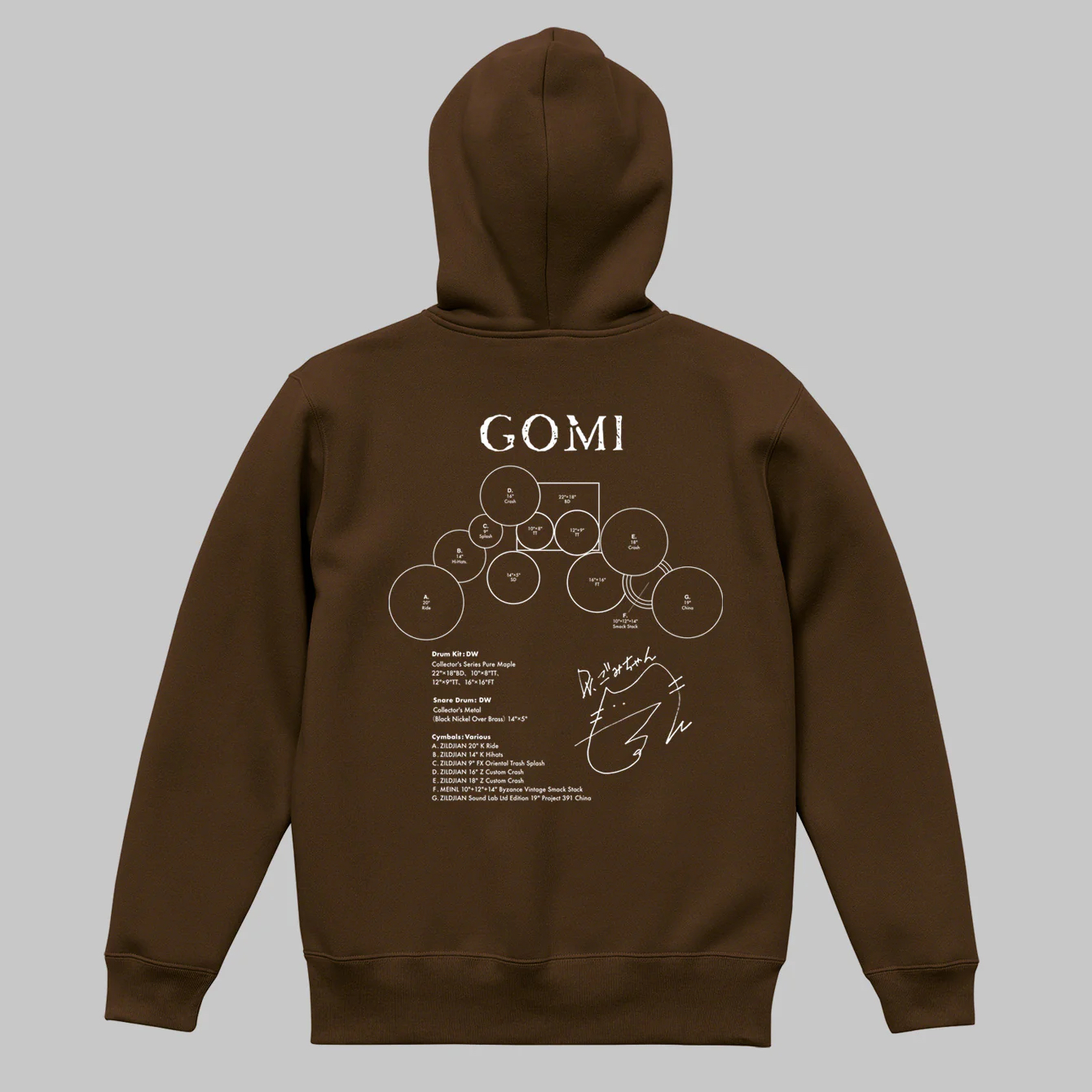 “YouTuberガールズ・バンド”=ステミレイツとしてのキャリアを持ち、現在はモデル活動も行いながら自身のバンド、Another Diaryで精力的な活動を見せるGOMI。彼女が一目惚れしたRose Copperフィニッシュがインパクト抜群のDW Collector’s Pure Mapleのセット図Tシャツ&フーディが誕生! 奏者左側に配置されたライド・シンバルやスネアとハイハットの距離感は、オープン・ハンド奏法を駆使する彼女ならではのセッティング!
