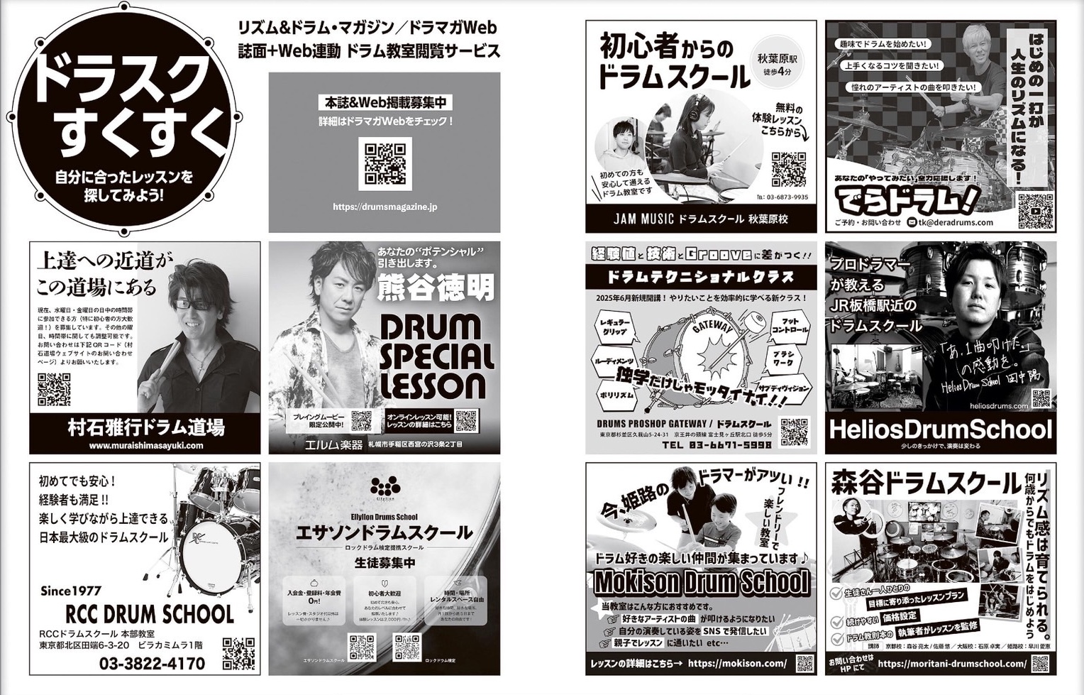 ドラムを習ってみたい!……でもどんな教室が良いの? どんな先生がいるの? どうやってコンタクトを取ったらいいの? 教室はどんな雰囲気なのかなど、意外と迷ってしまうドラム教室選び。そこでドラム・マガジンが、リットーミュージックのマガジン全誌で掲載されているスタジオ情報ページ“さがスタ・スタスタ”で培ったノウハウを生かし、ドラム教室の情報/魅力を多くの方に届けるサービス「ドラスク・すくすく」をスタート!