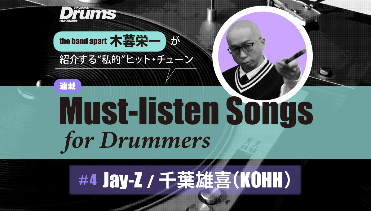 the band apartのサウンドの屋台骨を担う木暮栄一が、ドラマー/コンポーザー的視点で読者にお勧めしたい“私的”ヒット・チューンを紹介していく本連載。第4回では、32分音符をテーマとして、グラミー賞常連アーティスト=ジェイ・Zのシーン復帰作と、宇多田ヒカルとの共演や「チーム友達」でたびたび話題となる千葉雄喜(元・KOHH)の楽曲をフィーチャー!