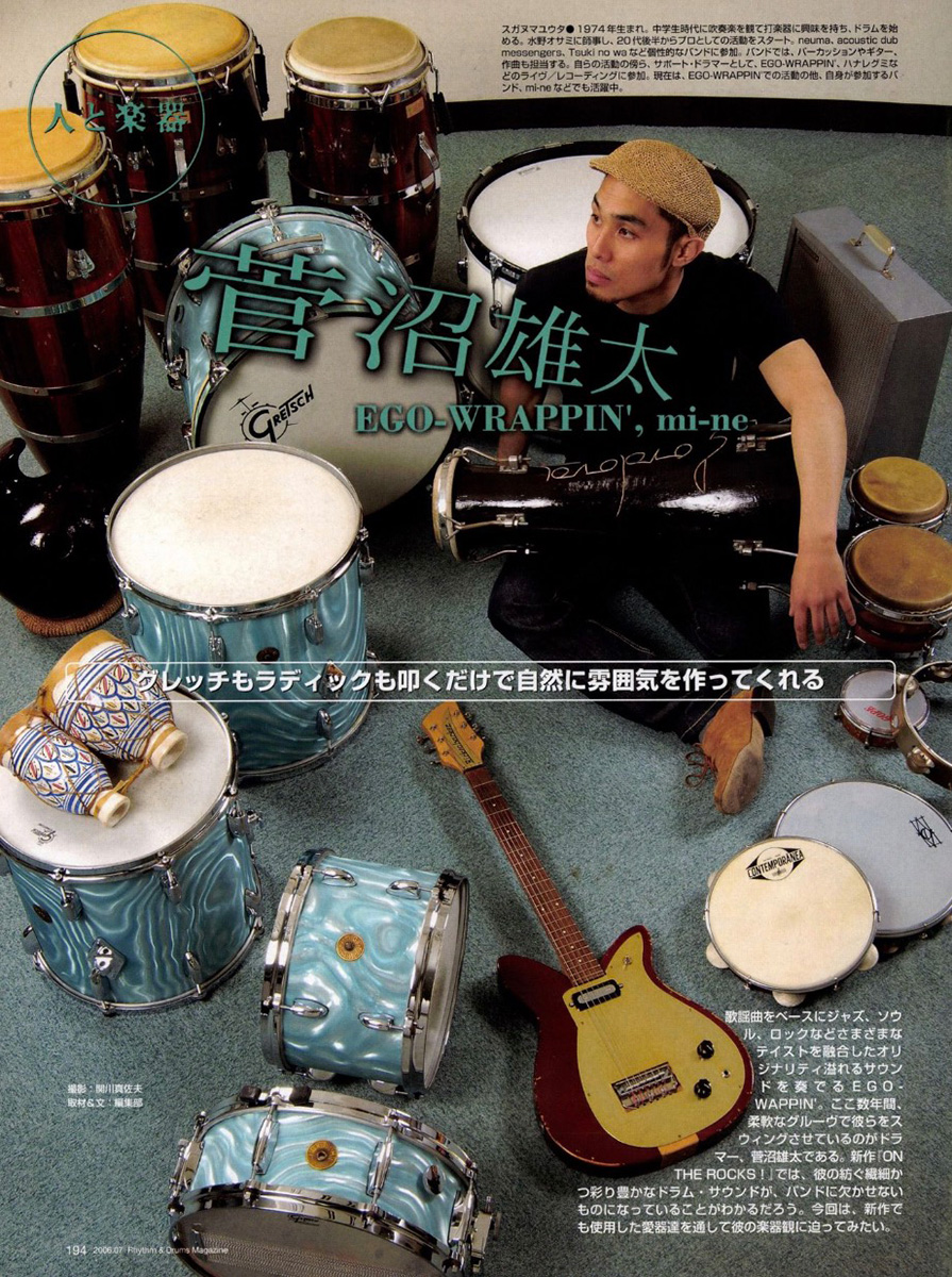 菅沼雄太氏が演奏するドラムスもかなり特徴的な音作りがなされており、ごく短いサステインにミュートされたタイコ類は、ほど良いEQとコンプで古いリズム・ボックスのような音色にミックスされている。歯切れの良いハイハット・オープンを多用した歌心あるドラミングに対して、曲中一度もシンバルが鳴らされないのもクールだ。