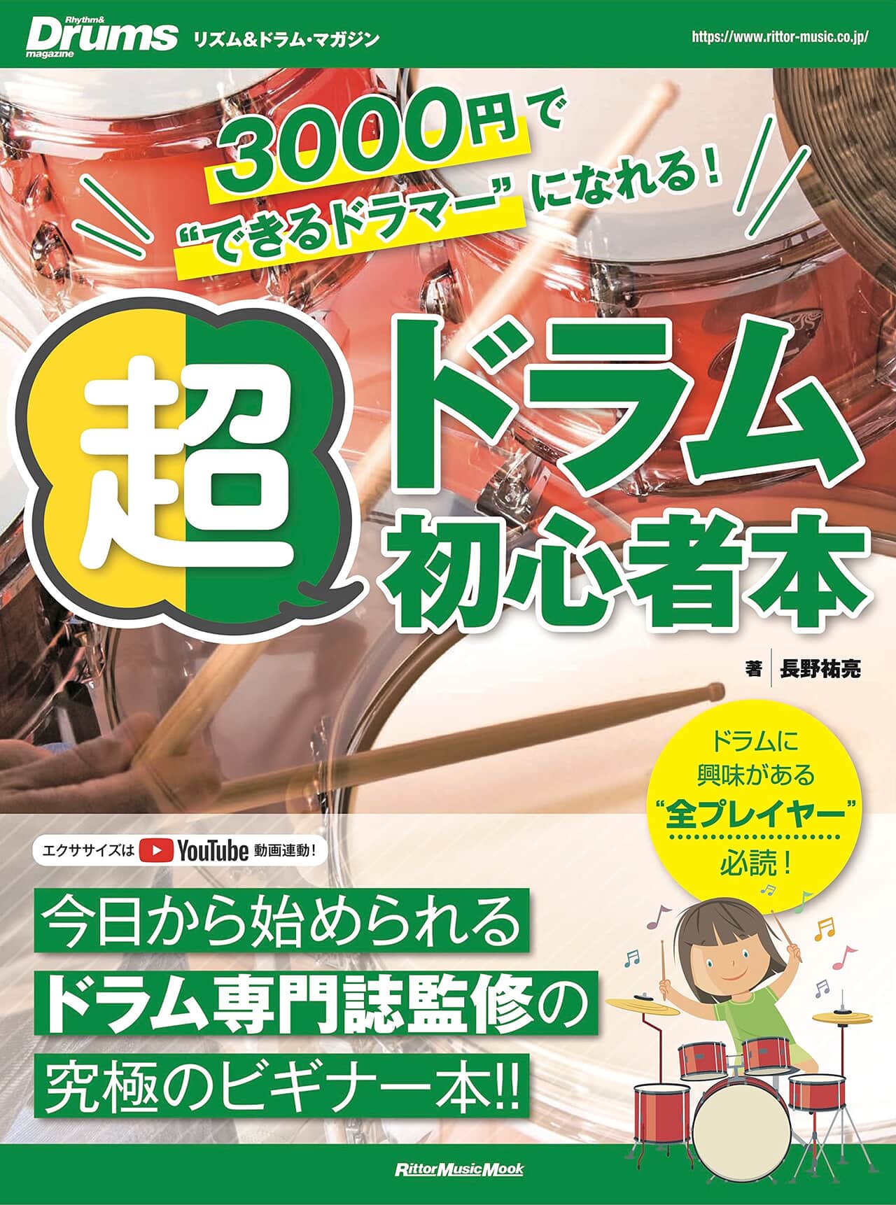 来年で創刊40周年を迎えるリズム&ドラム・マガジンが手がける初の本格的なビギナー向けのドラム教則本が完成! ドラム・マガジンのメイン・ライターであり、ドラム講師としても豊富なキャリアを誇る長野祐亮氏が、ドラムを始めてみたいという”初心者の一歩手前”のビギナーに基礎の基礎から丁寧にレクチャー。掲載しているエクササイズはYouTube連動! また「3000円でドラマーになれる」をテーマに、DIY練習パッドの作り方なども紹介。内容的にも経済的にも従来の教則本からさらに敷居を下げた”究極の教則本”となっております。