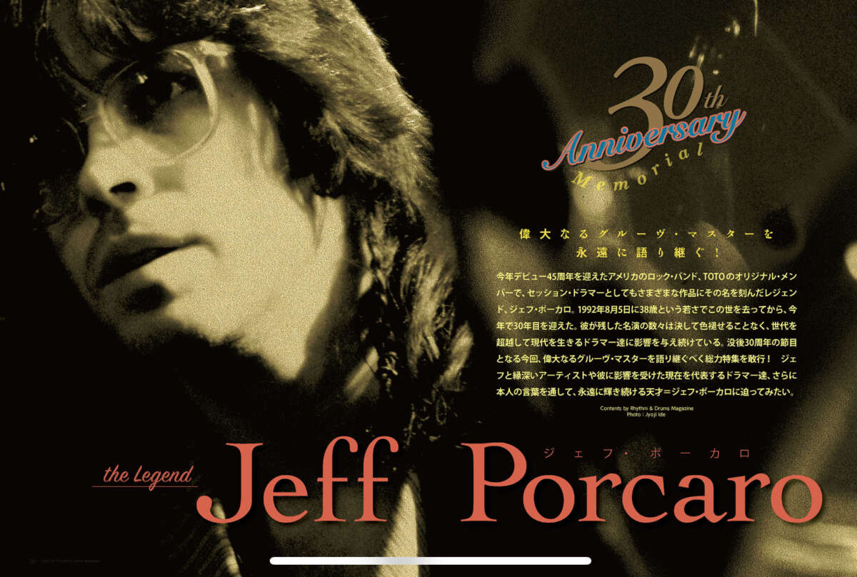 本日4月1日はジェフ・ポーカロの生誕記念日。DM2022年10月号では没後30周年の節目に、稀代のドラマーを偲ぶメモリアル特集を展開。ここでは同号にも掲載した海外記事を抜粋して公開。執筆者は生前のジェフと親交が深く、『It’s About Time』の著者でもあるロビン・フラン。イギリスのドラム雑誌『Rhythm』に寄稿された原稿で、黄金のグルーヴと称えられ、今なお多くの音楽家に影響を与え続ける彼のフィールの本質を紐解く内容となっている。