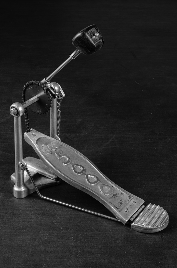 ペダルはDW-5000のチェーン・ドライヴのアンダー・プレートなしを愛用。写真は最初に使用していた初期型タイプで、素直で滑らかな踏み心地が特徴的。特にスプリングの柔らかさが現行品とは大きく異なるが、ジェフはパワーやスピードに関しても必要以上の機械的なアシストを求めず、あくまで自分の足の動きを自然に伝える道具を望んでいたと想像できる。