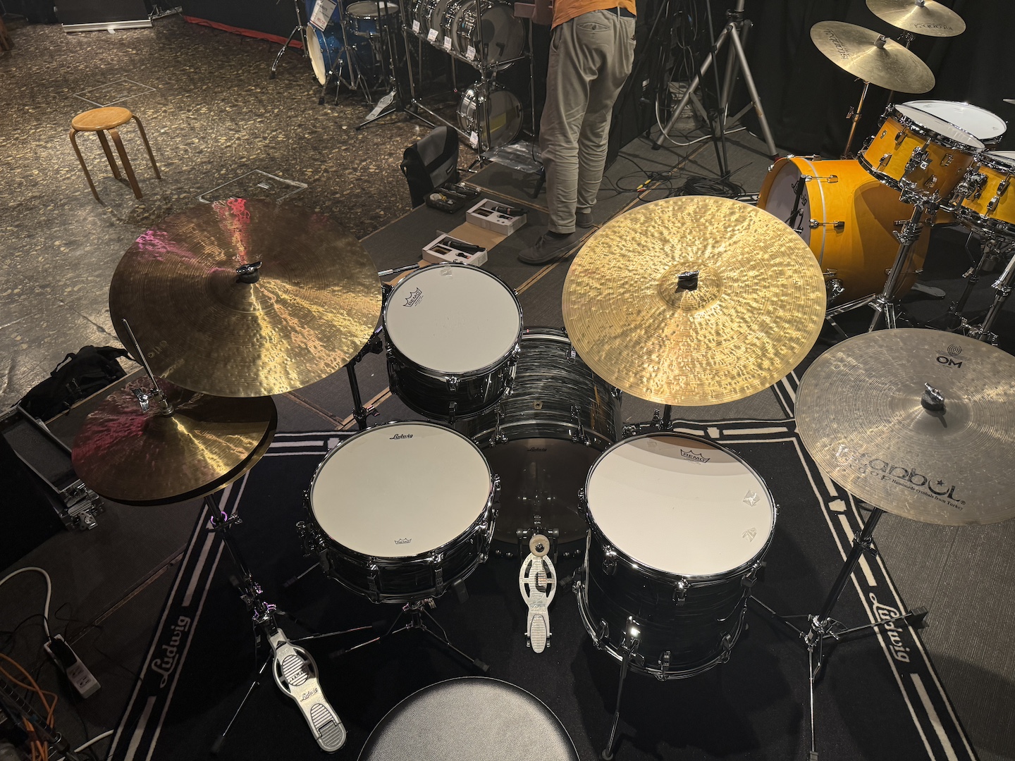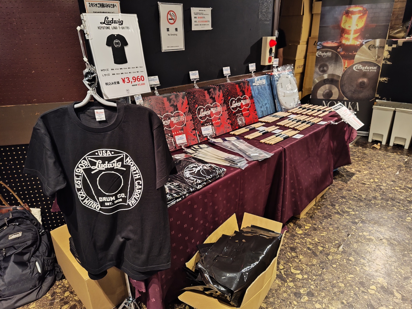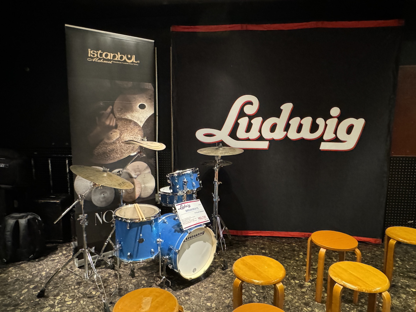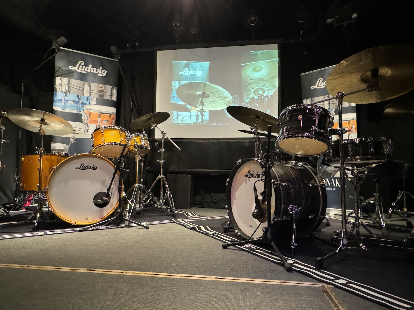 「⼭本拓⽮と探るLudwigの現在」と銘打たれたメイン・イベントのステージでは、メイン・インストラクターとして⼭本拓⽮(bohemianvoodoo)と、シライミュージックのドラム講師として教鞭を執る禰宜田 純氏と直井笑子氏をゲストに迎え、同店社⻑の白井としみつ氏がイベントの司会進行を担当。会場ではラディックを象徴する400系のスネア・ドラムや、レアな限定発売のスネア・ドラムなどが並び、ステージに広げられたClassic MapleとNeuSonicのドラム・セットと共に演奏できる環境が作られており、協賛企業である野中貿易が取り扱うIstanbul Agopのシンバルや、スティックメーカーInnovative Percussionのスティック、小口径ドラム・キット=Ludwig BreakBeatsも試奏できる絶好の機会となった。