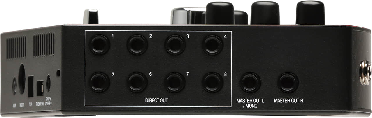 アウトプットはL/Rの他に、8系統のダイレクト・アウトとヘッドフォン端子を装備し、シンバル/タム・パッドの追加も可能。シンプルな操作性でありながらプロ・レベルのレコーディングやライヴにも対応する実力を兼ね備えています。