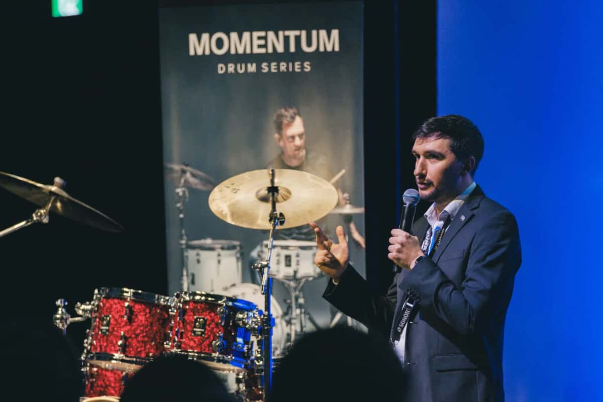 そして2025年、150周年の節目に限定復刻シリーズに加えて、新たに発表されたのがステージにも展示されたMomentum。ProliteのT.A.R. Mount SystemやSQ1のSound Sustainerといった定評あるハードウェアが採用され、ビーチ、バーチ、メイプルの3種からシェル材を選択できるドラム・セット・シリーズだ。また、従来からのO.S.M.によるシェル直径の最適化に加え、深さにおいても初採用。各ドラムの音響性能向上はもちろん、セットアップの快適性も向上しているという。ベニー・グレブは同シリーズについて「名器S-ClassixやDeliteを想起する、素晴らしいドラムです」と語っていた。