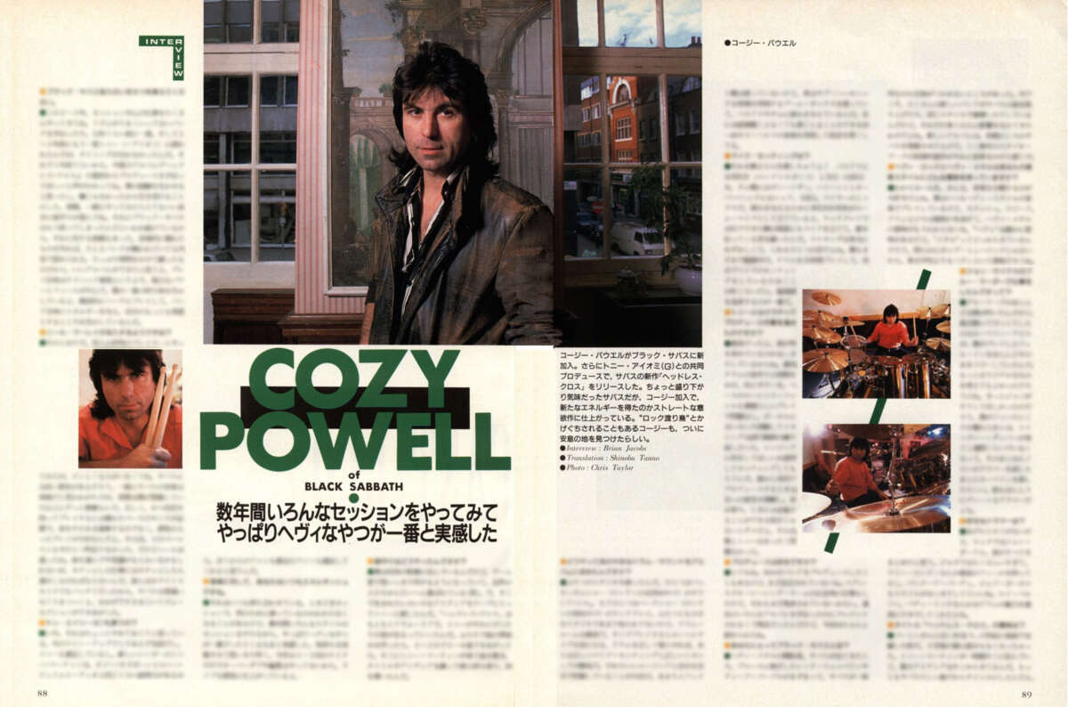 【Note】ラストは機材に焦点を当てた1989年7月号掲載の「My Tools」。ドラムやシンバル、スティックについてはもちろん、ヘッド&チューニングやモニターに至るまで、コージーが自身の機材についてディープに語る、かなりレアな内容となっている