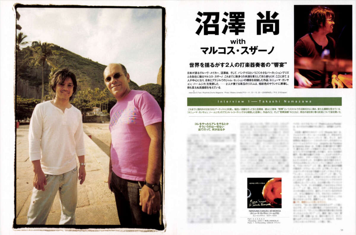【Note】参加作が相次いでリリースされ、FUJI ROCK FESTIVALなどさまざまなフェスへの参加で多忙を極めた2006年の夏。同年8月号のロング・インタビューでは“即興”をキーワードに、ブラジルの音楽イベントに出演して喝采を浴びた際の緊張と興奮を熱く語った他、マルコス・スザーノとの共作アルバム、より広がりを見せる活動などについて素直な心情を明かした。沼澤の多彩な音楽的交流に迫ったページや、ブラジルで撮影された写真の数々も見応えたっぷり。