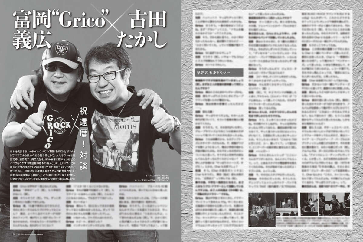 【Note】THE ALFEEの代表曲「メリーアン」のドラムを叩き、初期のツアーにも参加していた富岡“Grico”義広。過去の本誌で、THE ALFEEについて詳細を語った記事はないが、彼もまたTHE ALFEEの歴史を語る上で欠かすことはできないドラマーの1人。限られた参加ながらも、楽曲に刻まれたプレイは確かなインパクトを残している。そのキャリアをより深く知りたい人には、還暦を迎えた2018年8月号で行った、盟友=古田たかしとの対談記事もぜひチェックしてほしい。